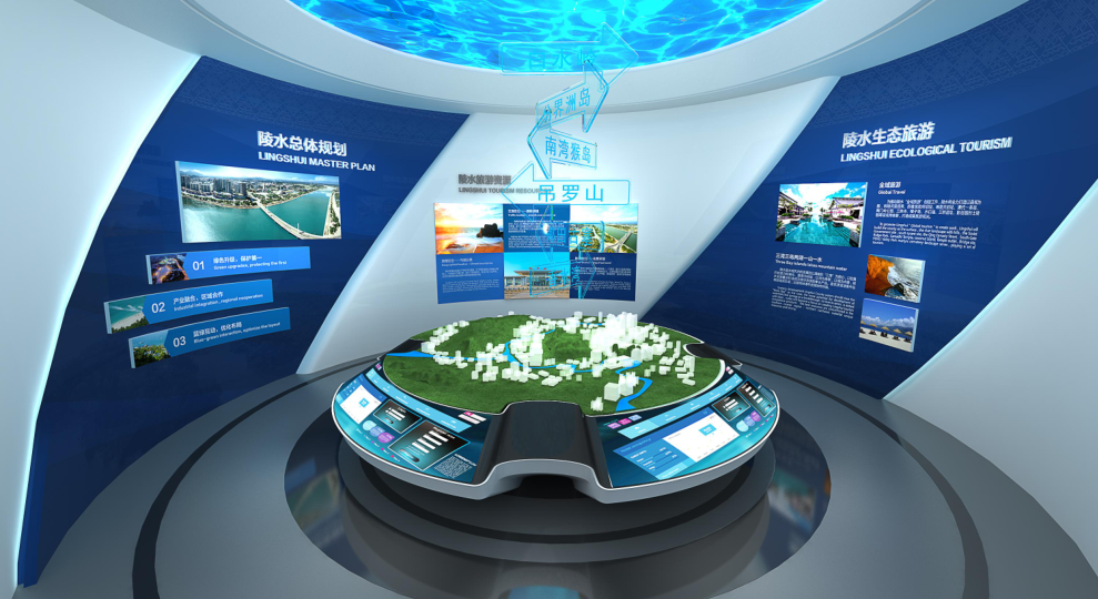 以多媒體和數(shù)字化技術(shù)作為展示技術(shù),結(jié)合獨(dú)到的數(shù)字創(chuàng)意宣傳內(nèi)容, 以各類新穎的技術(shù)吸引參觀者,實(shí)現(xiàn)人機(jī)交互方式的展廳形式。集各種多媒體展覽展示系統(tǒng)為一體的綜合展示平臺(tái),包括數(shù)字沙盤、環(huán)幕、弧幕、球幕影廳、迎賓地幕系統(tǒng)、互動(dòng)吧臺(tái)、互動(dòng)鏡面及觸摸屏等等。